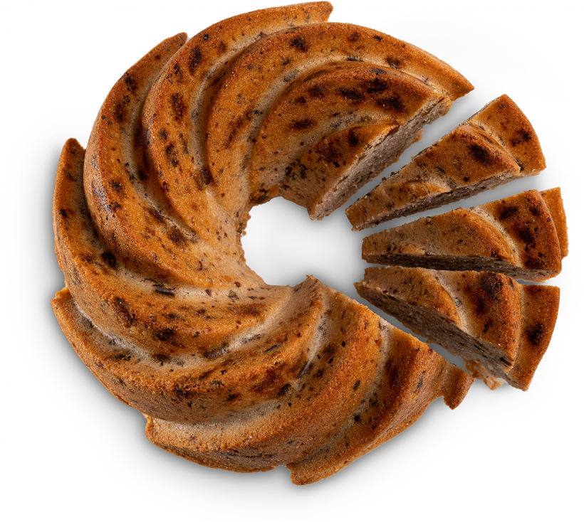 Rýžová mouka, bramborový škrob, tapioková mouka, cukr, vejce, slunečnicový olej, pitná voda, kukuřičný škrob, pohanková mouka, jádra vlašských ořechů, sušené fíky, bourbon vanilka, kypřící látky (dihydrogenfosforečnan vápenatý, hydrogenuhličitan sodný), xanthanová guma.