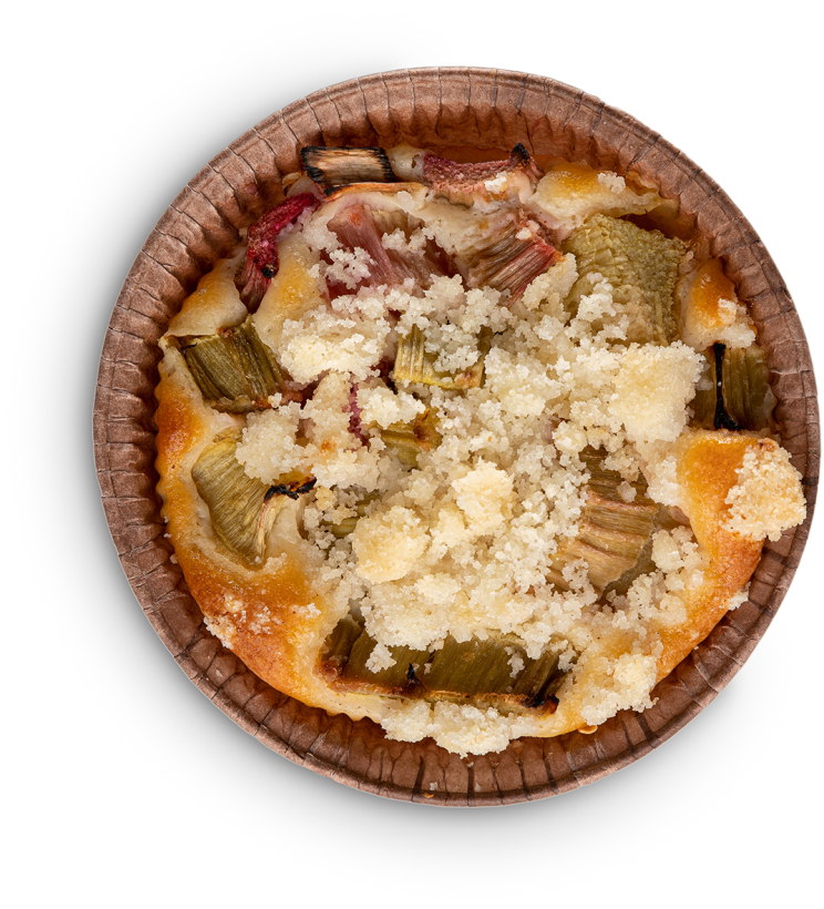 Zakysaná smetana, rýžová mouka, bramborový škrob, tapioková mouka, cukr, slunečnicový olej, vejce, máslo, kukuřičný škrob, pohanková mouka, kypřící látky (dihydrogenfosforečnan vápenatý, hydrogenuhličitan sodný), xanthanová guma, rebarbora