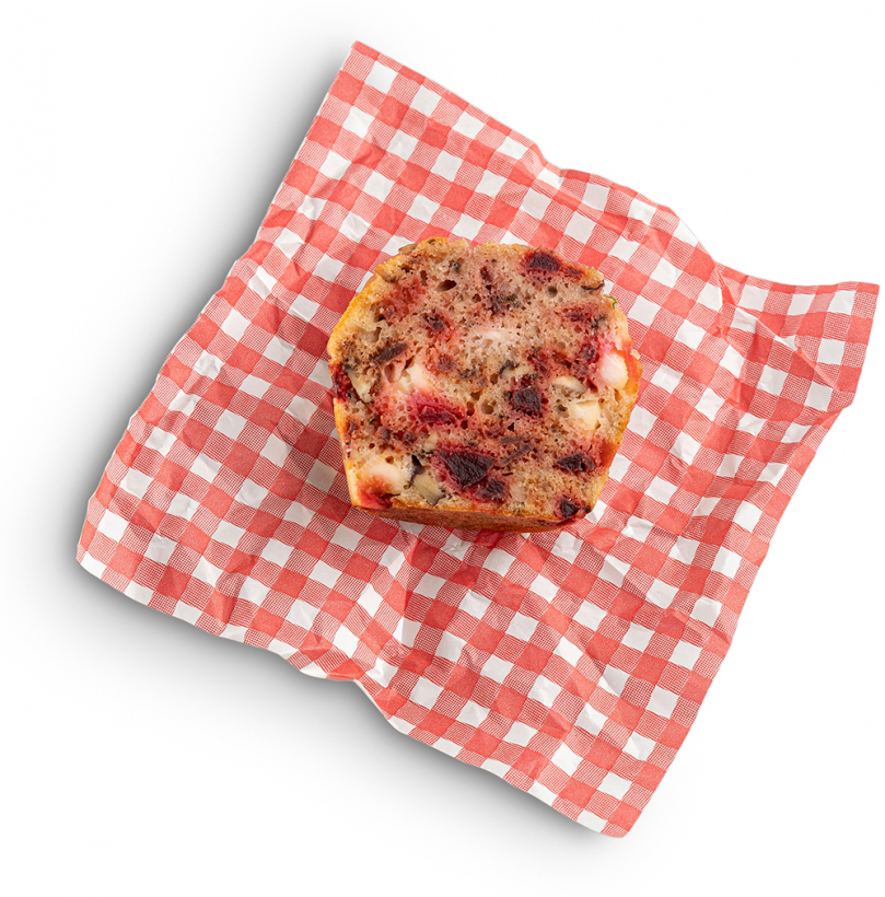 Červená řepa pečená, sýr FETA (Pasterizované ovčí mléko, Pasterizované kozí mléko, mlékařské kultury, sýřidlo, jedlá sůl), vlašské ořechy, škrob (kukuřičný, bramborový), voda, rýžová mouka, slunečnicový olej, vejce, kukuřičná mouka, česnek, kypřící látky (dihydrogenfosforečnan vápenatý, hydrogenuhličitan sodný), sušené bílky, dextróza, stabilizátory (Hydroxypropylmethylcelulóza, xanthan), modifikovaný bramborový škrob, emulgátor (mono- a diglyceridy mastných kyselin), sůl.