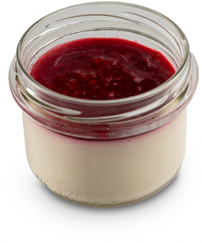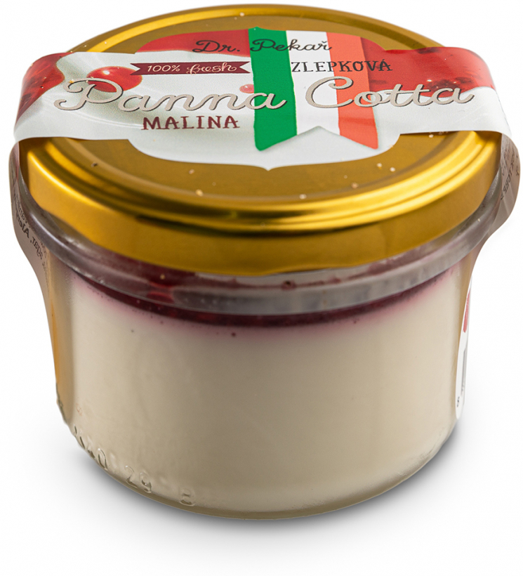 Smetana 33%, maliny, cukr, pravá vanilka, želatina, agar
