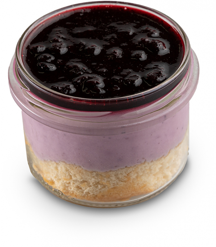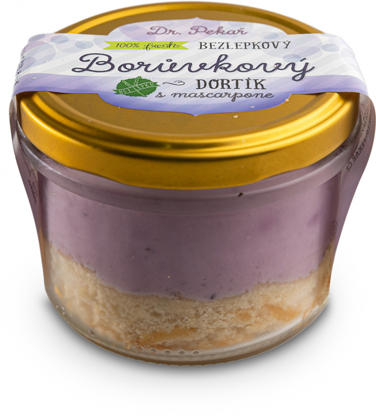 Korpus: vejce, cukr, škrob (bramborový, kukuřičný, tapiokový), rýžová mouka, lupinová mouka, kukuřičná mouka, kypřící látky (dihydrogenfosforečnan vápenatý, hydrogenuhličitan sodný), sůl, stabilizátor (E415), aroma. Náplň: borůvky, tvaroh, mascarpone, cukr, smetana, želatina.