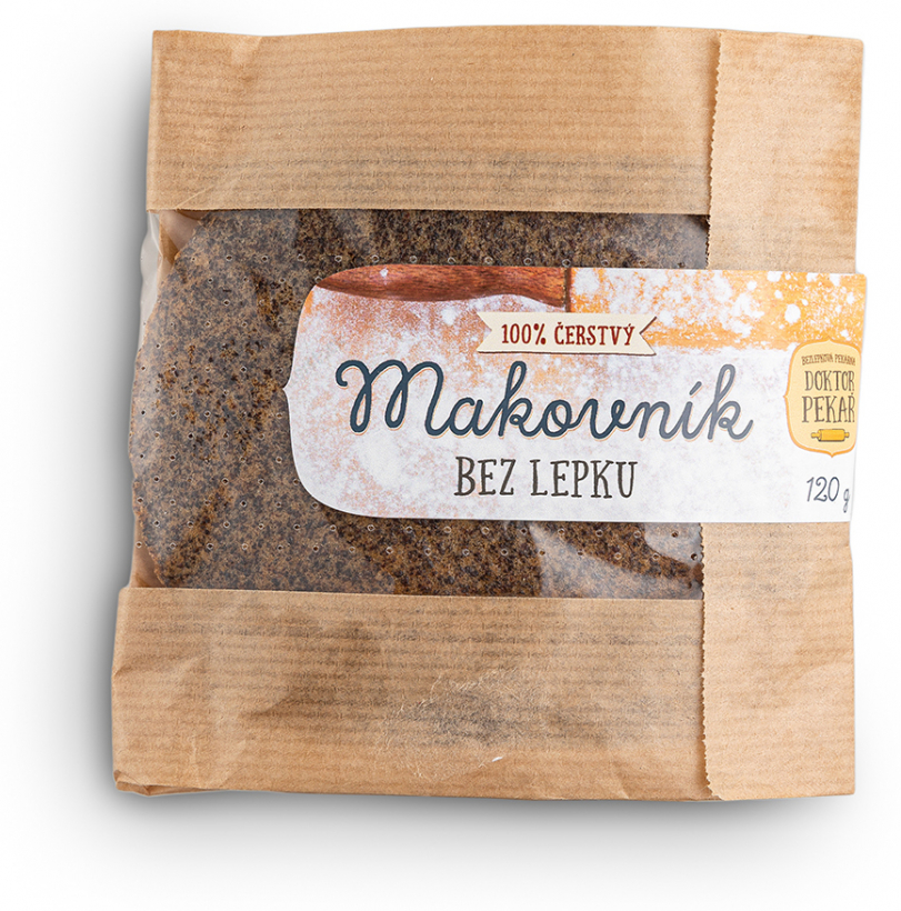Vejce, cukr, mák mletý termostabilizovaný, voda,slunečnicový olej, pohanková mouka, bezlepkový pšeničný škrob, rýžová, mouka, sójová mouka, kypřící látky (dihydrogefosforečnan sodný, hydrogenuhličitan sodný), bramborový škrob, stabilizátory (hydroxypropylmethylcelulóza, guarová mouka), sůl.
