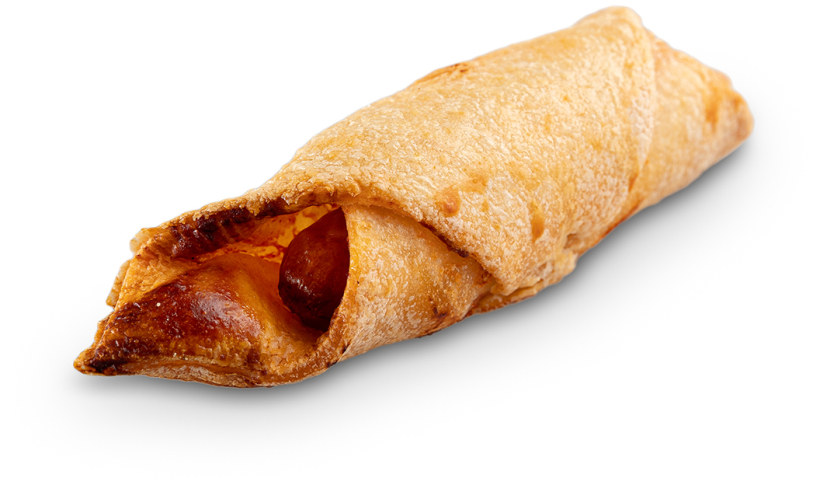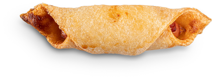 Těsto: škrob (kukuřičný, rýžový), margarín (rostlinné tuky a oleje (řepkový, kokosový, slunečnicový), voda, emulgátor E471, regulátor kyselosti E330 a E331, jedlá sůl, přírodní aroma, barvivo betakaroten), mouka rýžová, vláknina (z čekanky, z indického jitrocele), stabilizátory (E464, E412), dextróza, sójová bílkovina, sušený tuk (slunečnicový), emulgátor (E322), kypřící látky (E450, E500). Náplň: vídeňský minipáreček (Vepřové a hovězí maso 80 %, pitná voda, jedlá sůl, škrob, koření v různém poměru, stabilizátor: trifosforečnany, cukr, látka zvýrazňující chuť a vůni: glutaman sodný, aroma, antioxidant: kyselina L-askorbová, barvivo: E120, konzervant: dusitan sodný, jedlé kolagenové střevo) rajčatový protlak (pitná voda, rajčatový protlak, cukr , zahuštovadlo: E1422 , regulátor kyselosti: kys. citrónová, konzervační látka: sorban draselný).