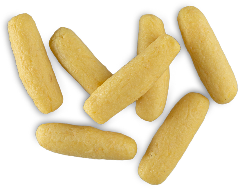 Pitná voda, bramborové vločky, vařené brambory, vařené jáhly (12 %), rýžová mouka, škrob (bramborový, kukuřičný, tapiokový), sůl, stabilizátory (E415, E464), kukuřičná mouka, koření sůl. Posyp: mák, cukr